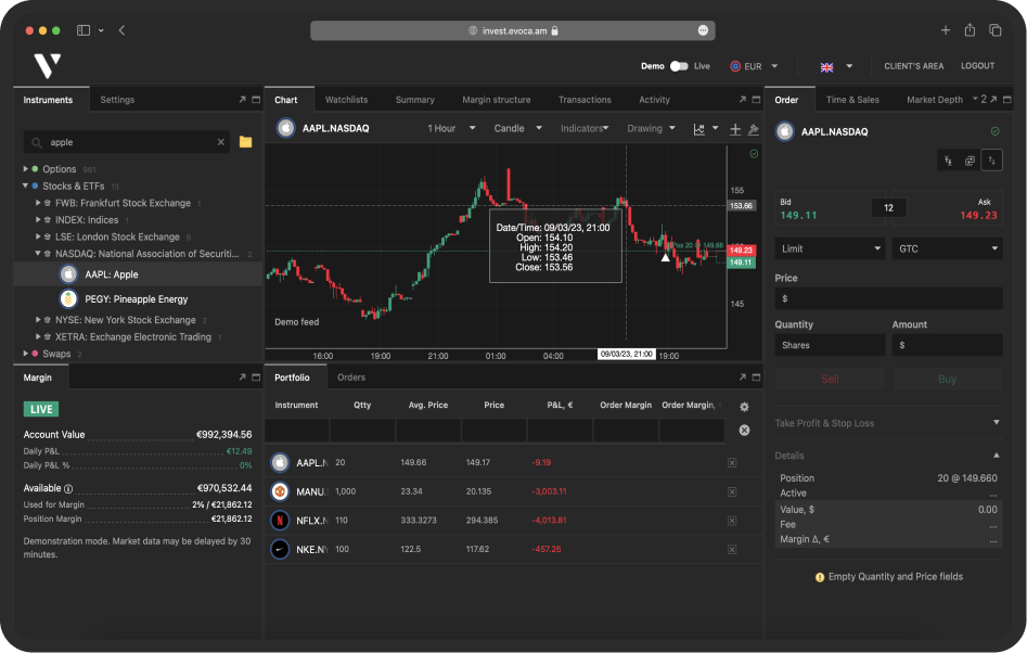 Համալրեք Ձեր բրոքերային հաշիվը Evocabank-ում և կատարեք ներդրումներ միջազգային ֆինանսական շուկաներում