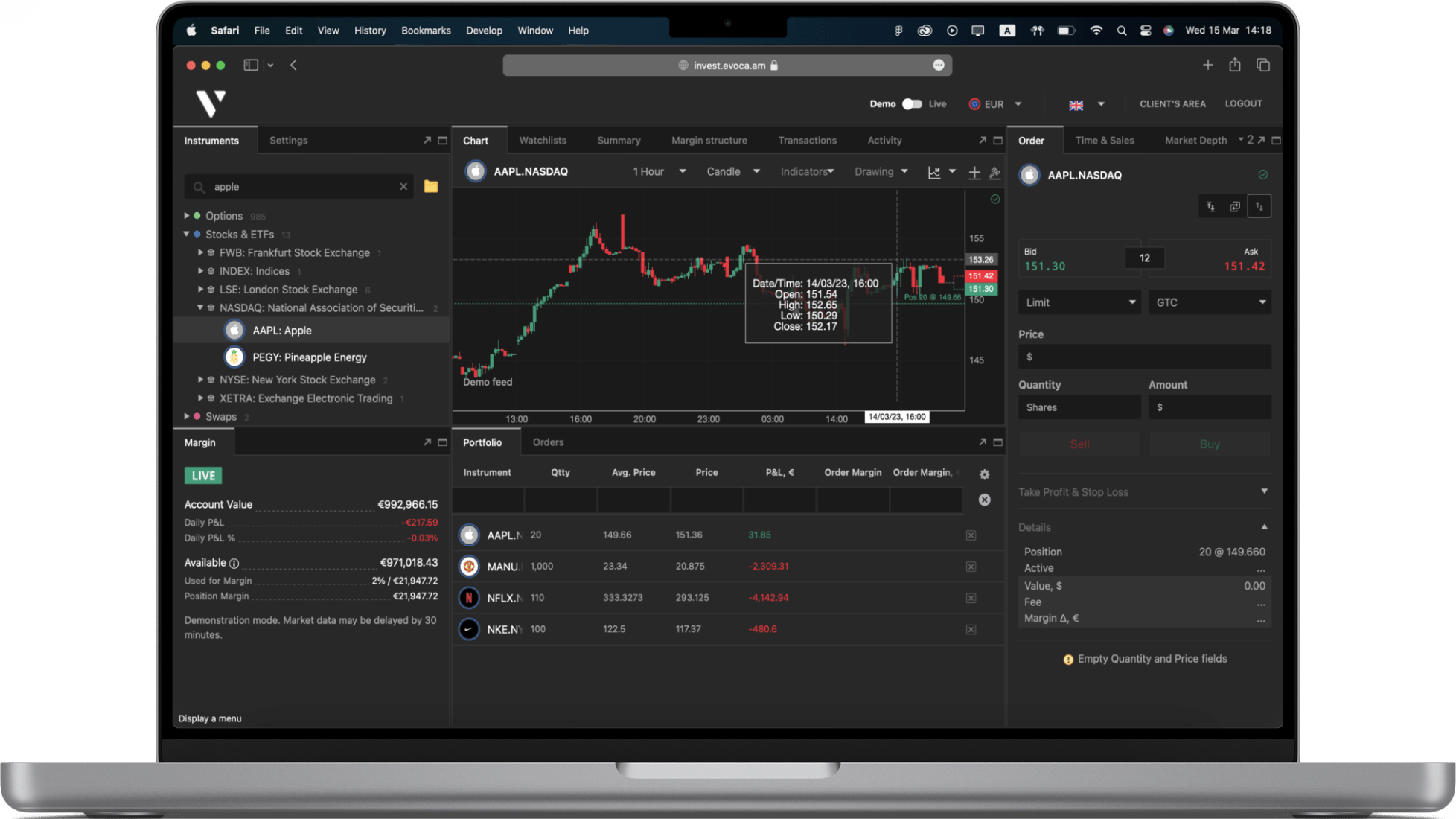EvocaINVEST հավելվածում հասանելի են ավելի քան 20 երկրների ֆինանսական շուկաների (ԱՄՆ, Եվրոպա, Ասիա) արժեթղթեր: Ֆինանսական շուկաների ցանկին կարող եք ծանոթանալ`անցնելով հետևյալ hղումով: